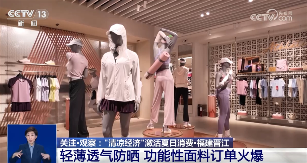 目前,晋江全市无数百家企业出产功能性面料,涵盖防晒、凉感、抗菌、速干等多个品类,这些面料被普遍使用于活动服、户外服及夏日日常穿搭中。
