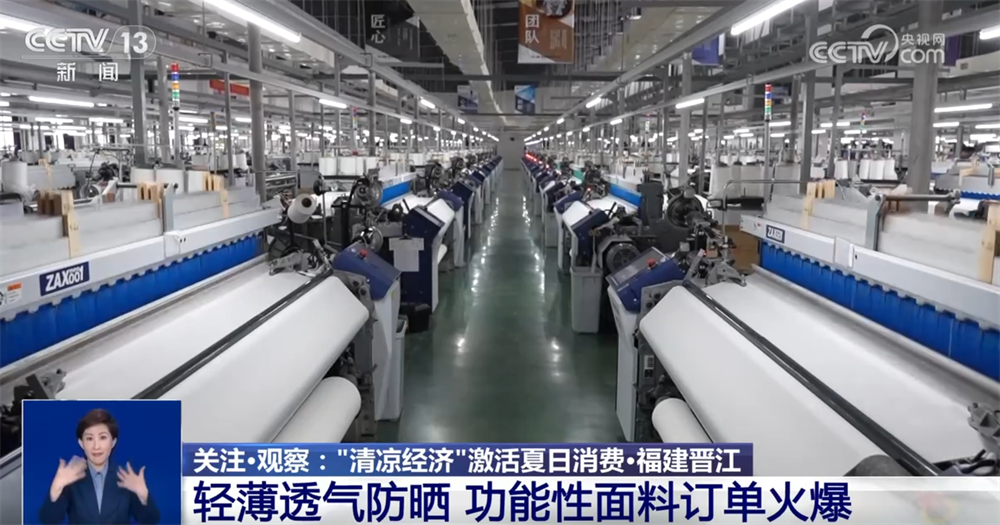 除了旅逛消费,盛夏时节,防晒产物也送来发卖旺季。正在福建晋江,这里的多家服拆出产或纺织面料企业出产的凉感、速干、驱蚊、防晒等功能性面料订单火爆,备受市场青睐。