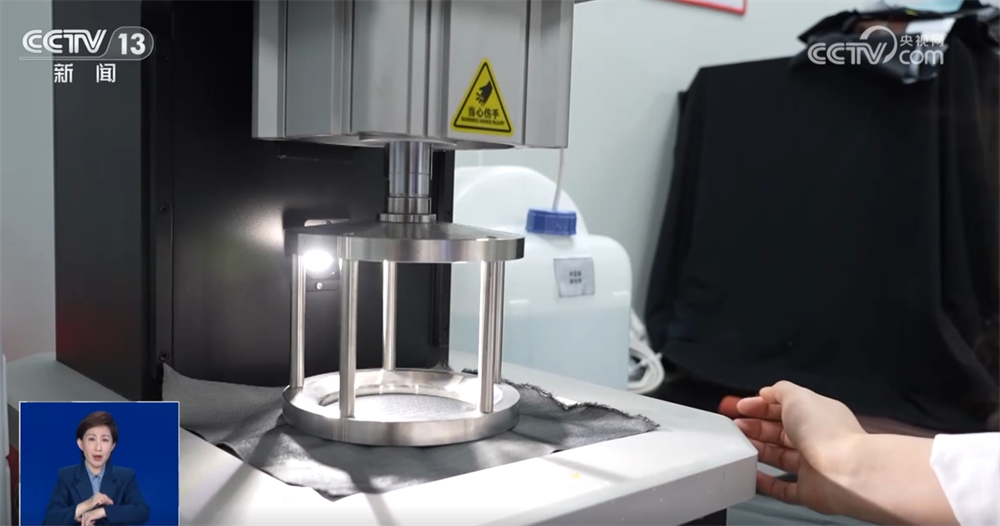 正在晋江市金井镇的绿色高端面料工业园,很多企业都设置了面料尝试室。防晒指数、透气宇、耐磨度,面料的很多分歧功能都正在这里进行测试。