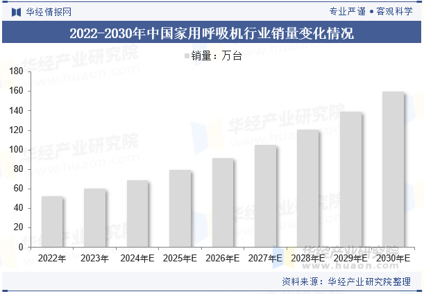 近年来,中国度用呼吸机的销量呈现显著增加趋向。跟着老龄化社会的到来和慢性呼吸疾病患病率的上升,市场需求不竭添加。新冠疫情也促使更多家庭关心呼吸健康,进一步鞭策了呼吸机的销量。线上渠道(如电商平台)和线下渠道(如病院、药店、医疗器械专卖店)配合鞭策了家用呼吸机的发卖。出格是电商平台的兴起,估计2030年中国度用呼吸机销量上涨至160万台。